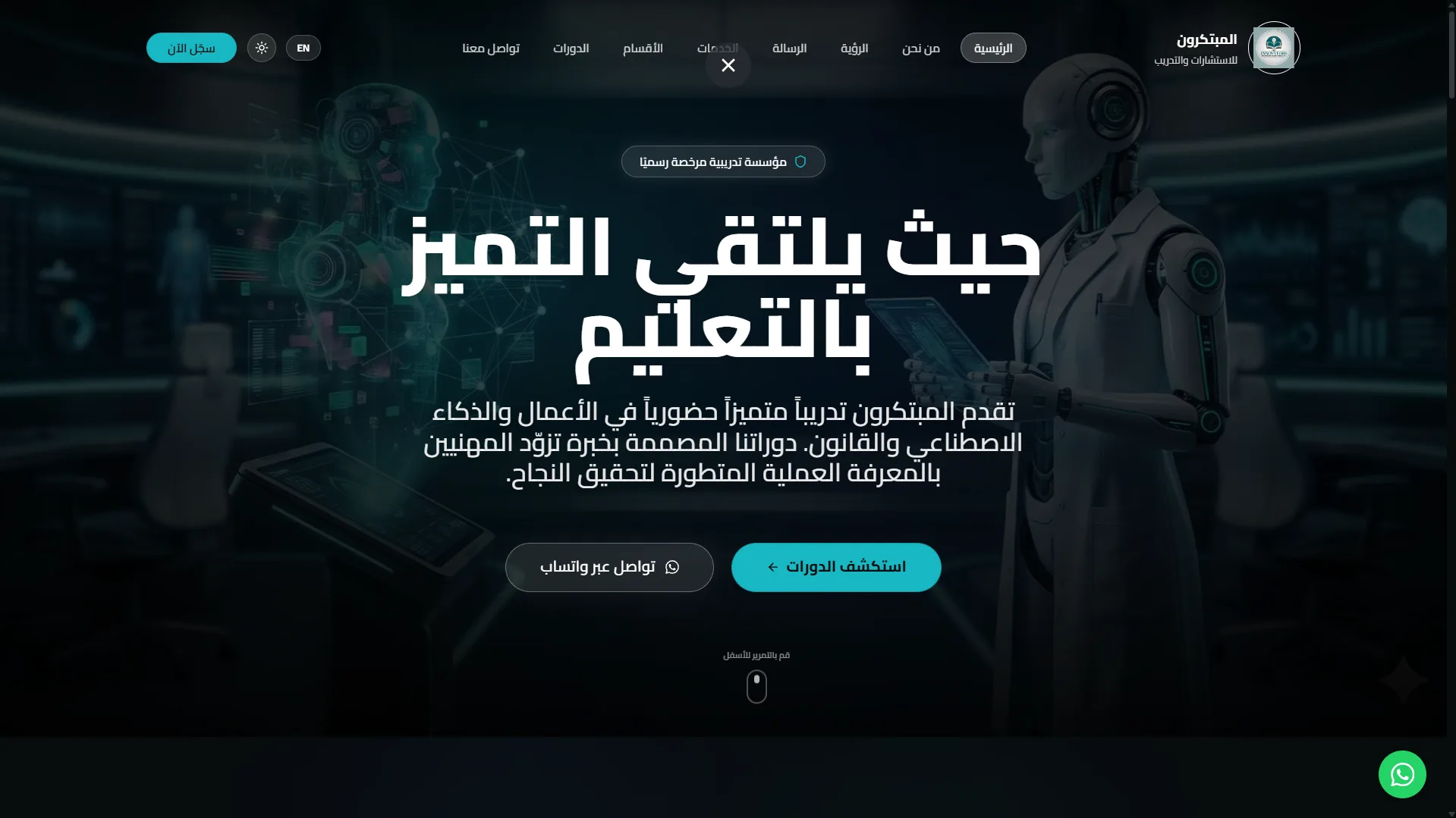منصة التدريب "المبتكرون" – موقع تعريفي وحجز الدورات