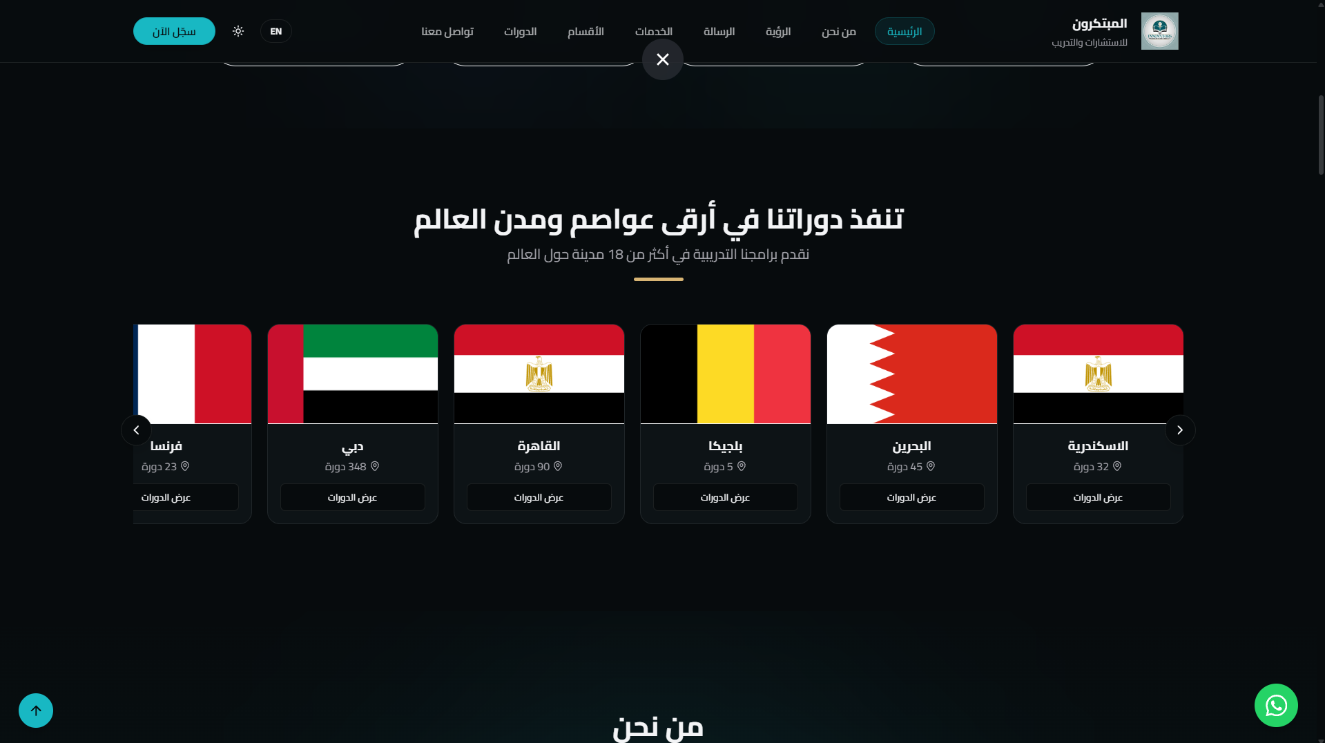 منصة تدريب احترافية تعرض الدورات، تتيح التسجيل المباشر، وتقدم تجربة مستخدم حديثة تدعم اللغتين العربية والإنجليزية.