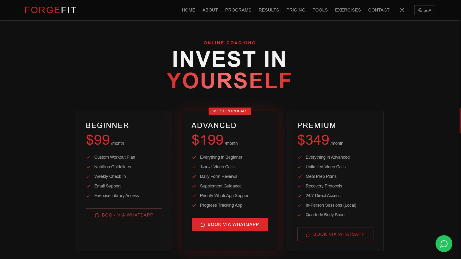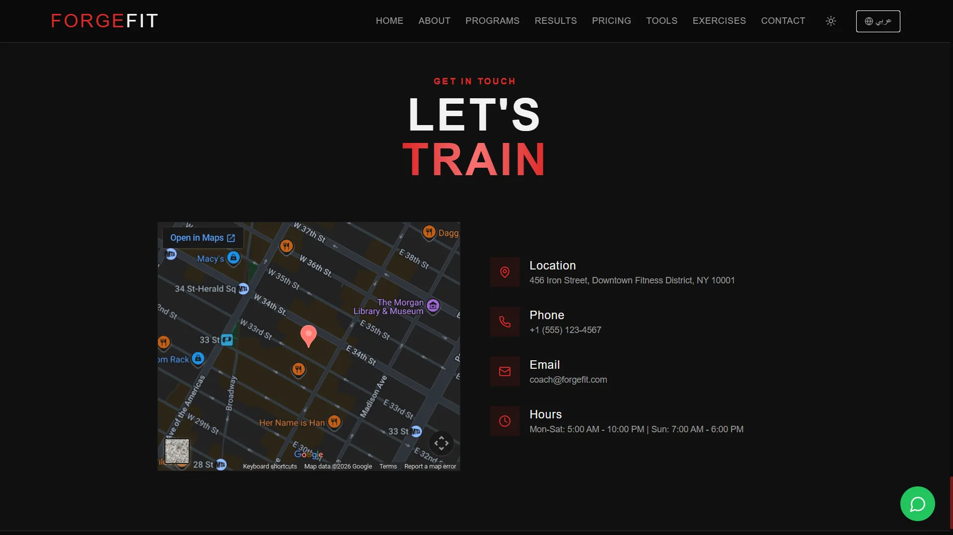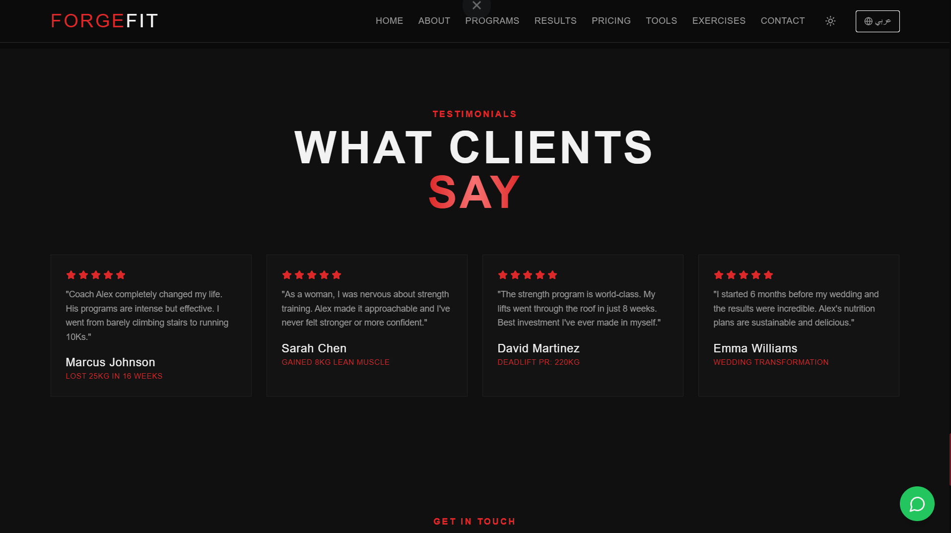 ForgeFit هو موقع متكامل للياقة البدنية تم تصميمه ليكون أكثر من مجرد موقع تعريفي، بل منصة رقمية تساعد المستخدم على بدء رحلته في التحول البدني وتحقيق نتائج حقيقية.