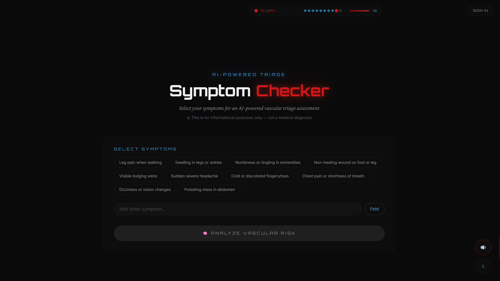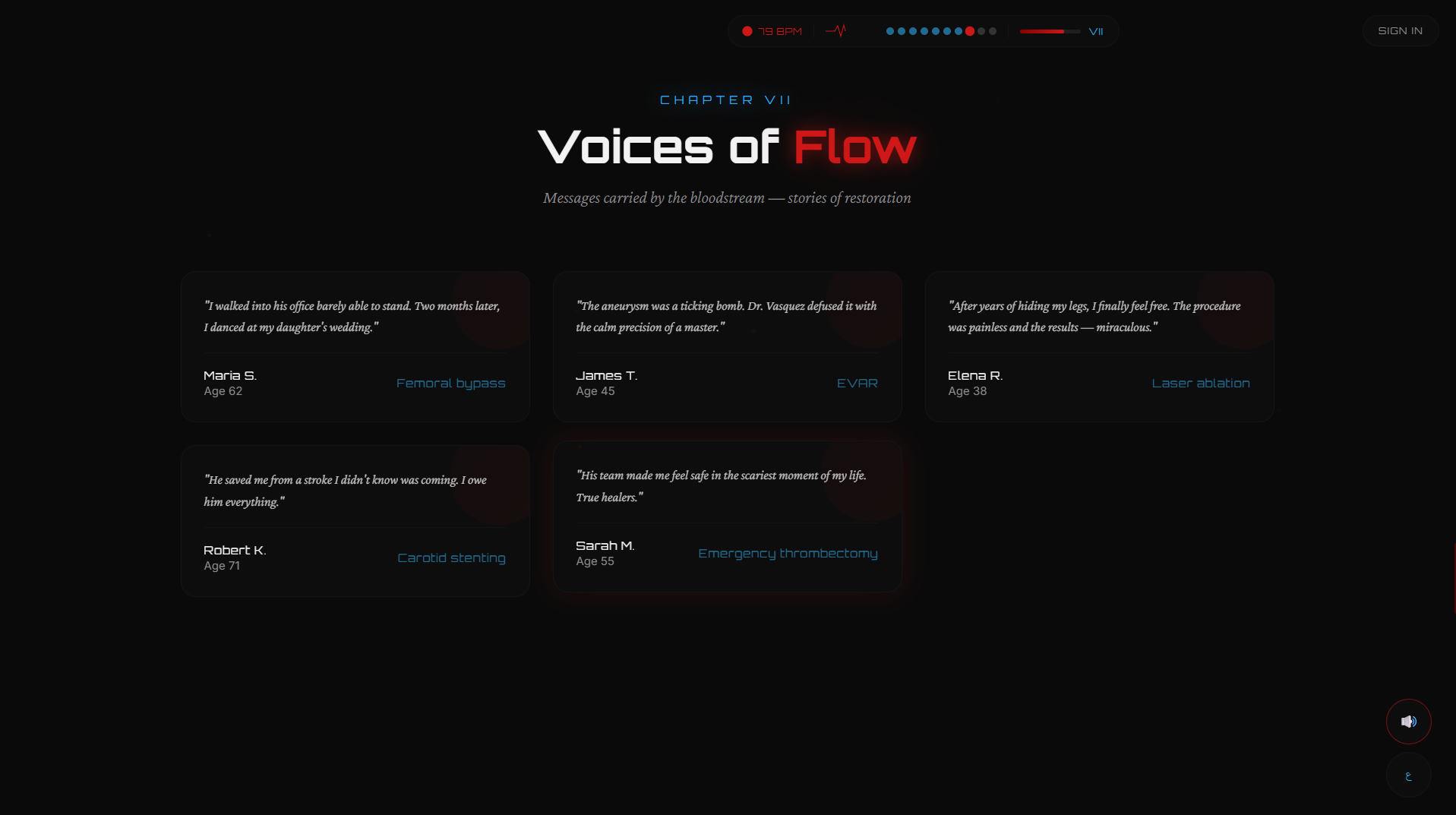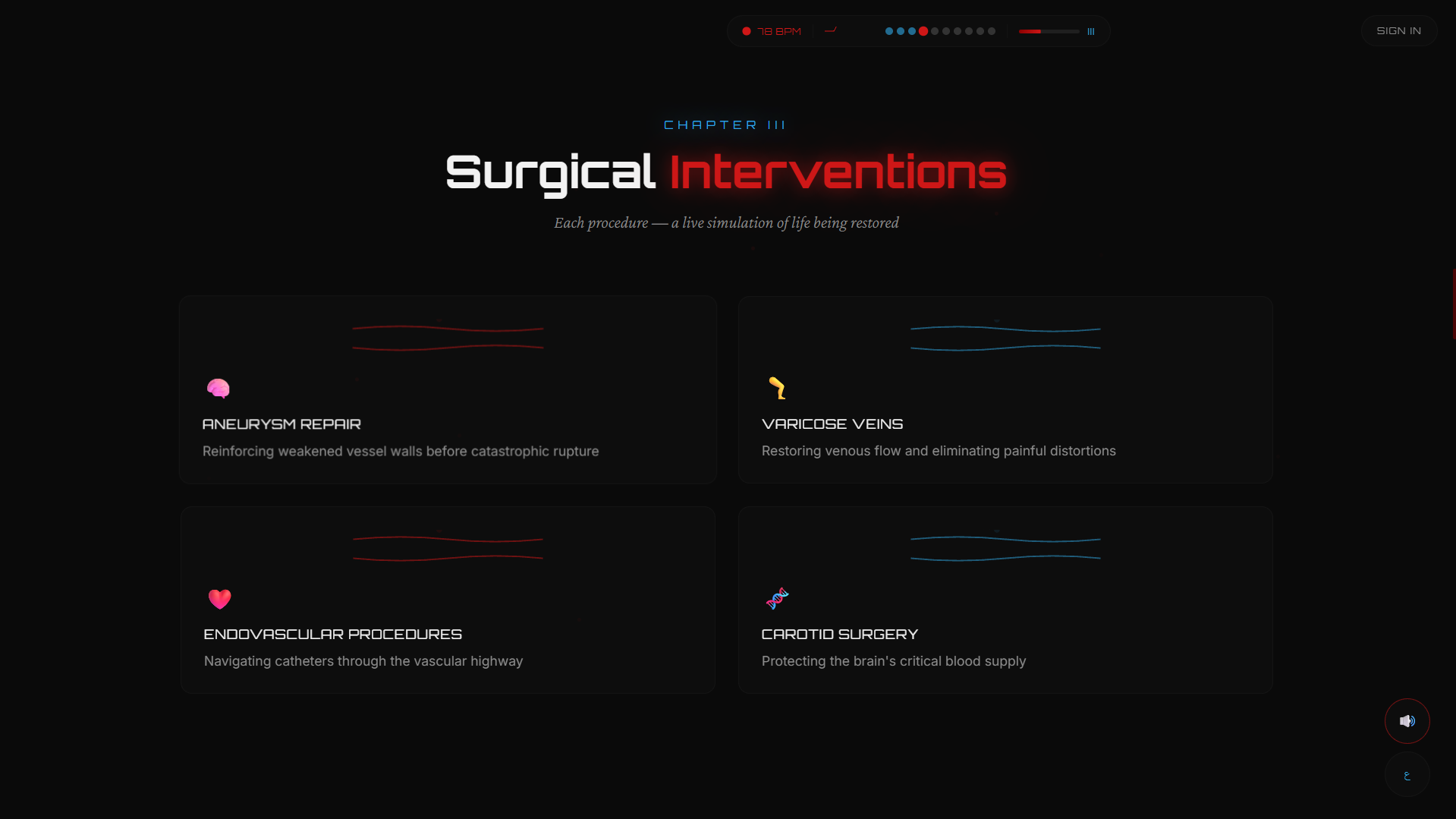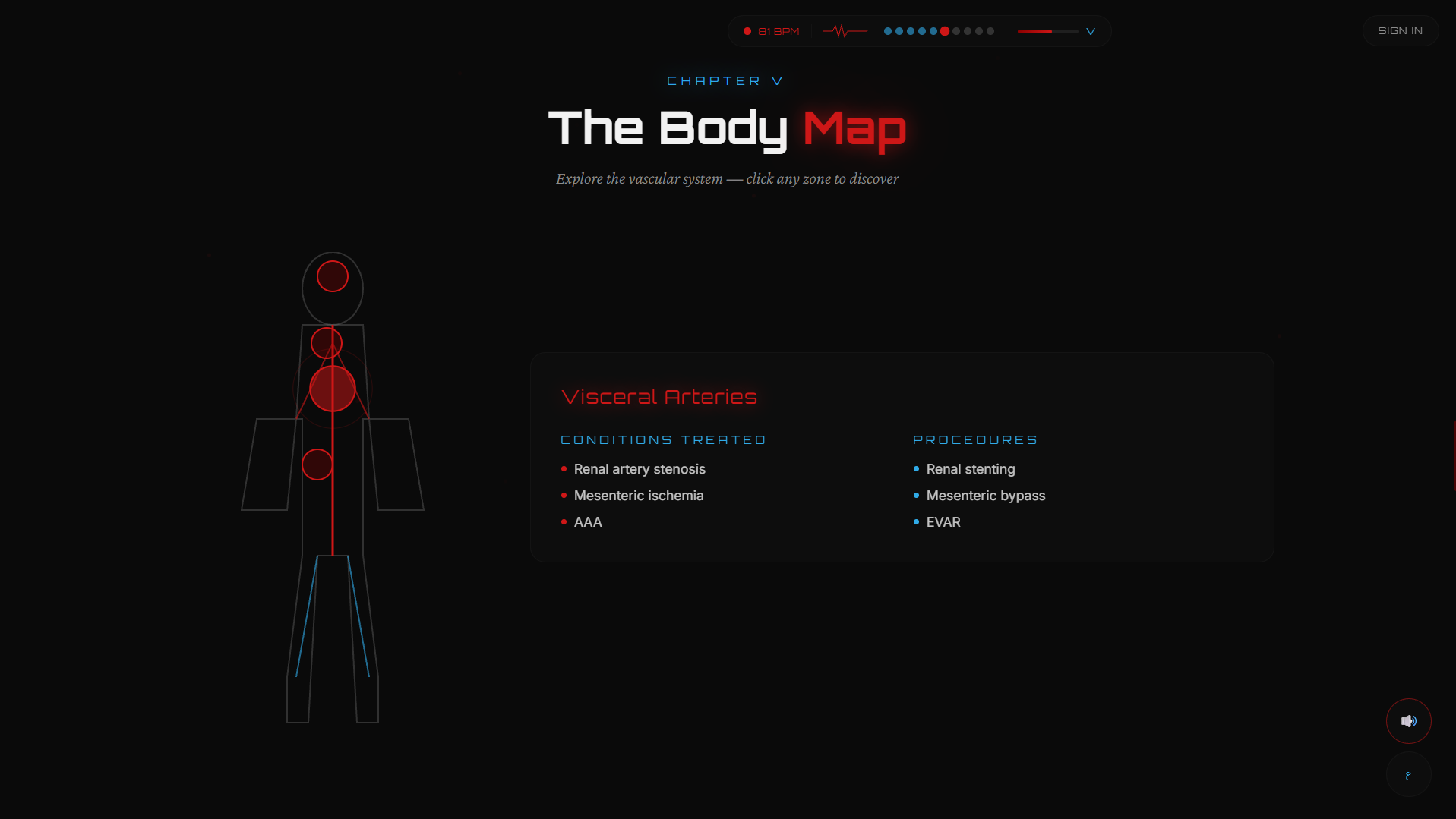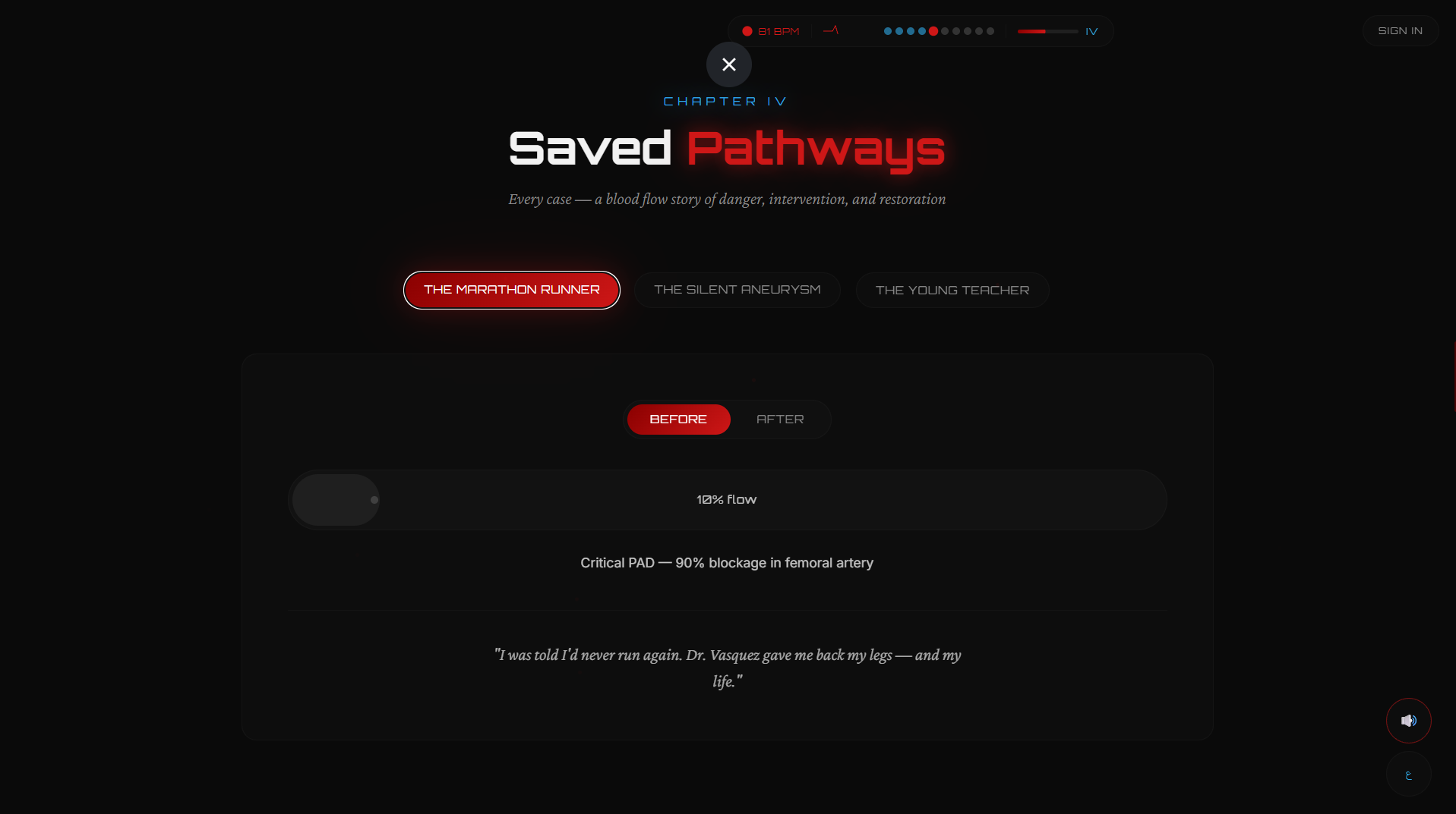 تجربة رقمية تفاعلية لطبيب أوعية دموية تمكّن المرضى من فهم حالتهم واستكشاف العلاج واتخاذ قرار طبي واعٍ.